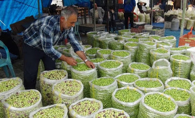 Mardin’de kurulan yeşil zeytin pazarı bu yılda da hareketli geçti